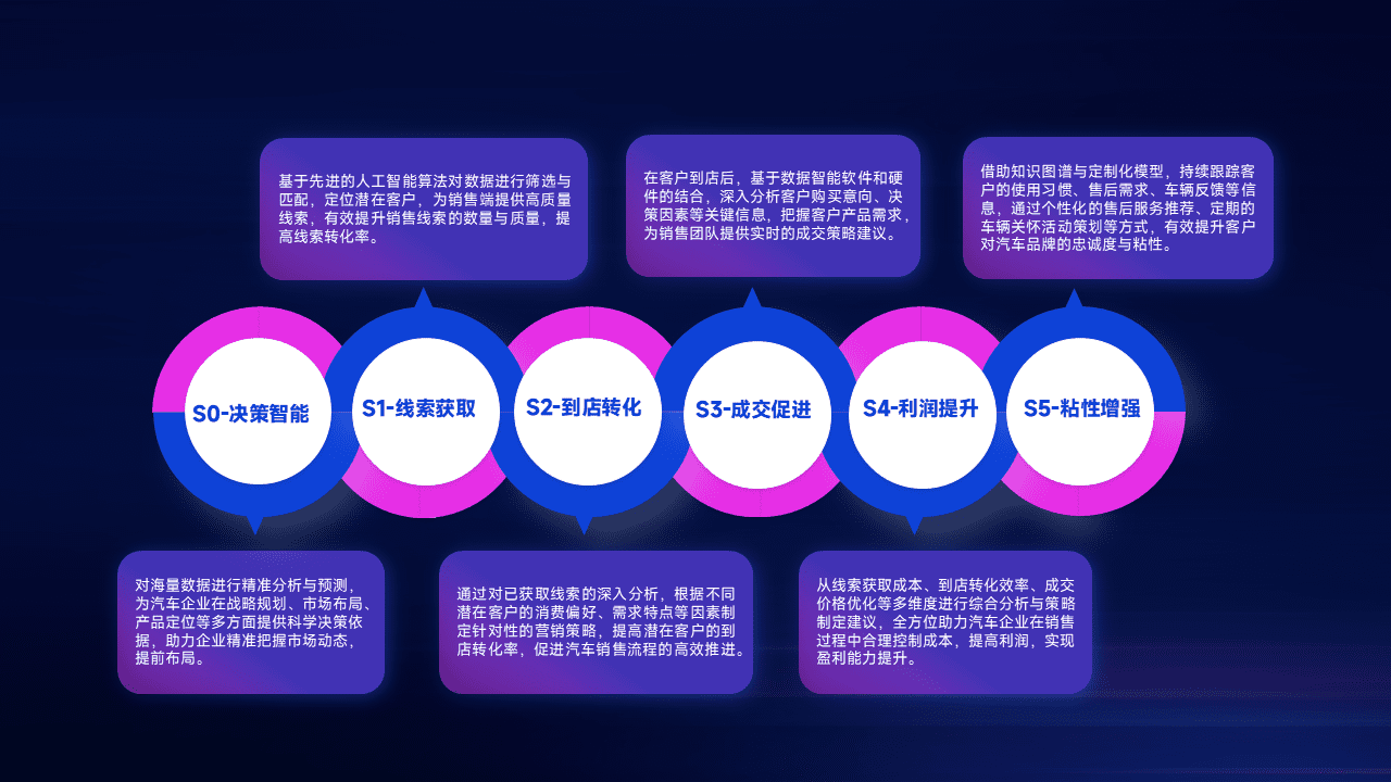 通过拓宽潜在客户来源、、、、优化线索分配并提高到店转化率,,,以增强销售效率。。。同时,,,利用线索数据不断优化分析模型,,,有效提升转化率,,扩大营销影响力。。。。